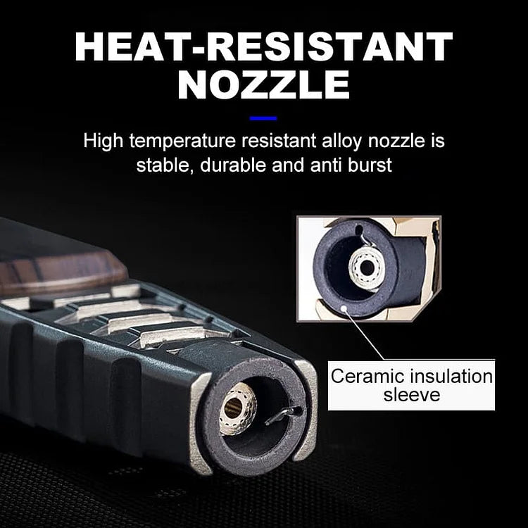 The spray gun lighter adopts a heat-resistant ceramic nozzle to ensure long-term use and resistance to deformation. In order to make the nozzle cool faster, we have added a cooling hole design.